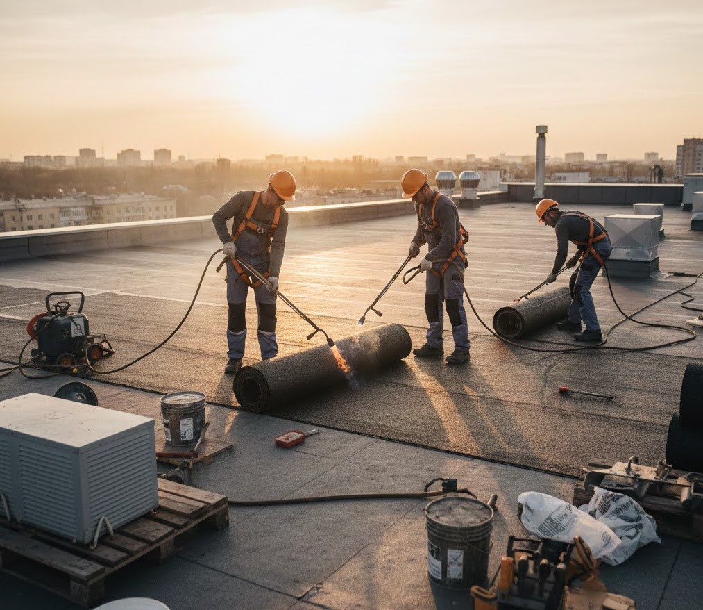 Мы не используем устаревший рубероид. Являясь авторизованным партнером корпорации Технониколь, мы применяем современные битумно-полимерные мембраны (серии Унифлекс, Техноэласт). Они сохраняют эластичность на морозе и не плавятся на жаре. Наши бригады строго соблюдают технологию наплавления, создавая монолитный бесшовный ковер, устойчивый к механическим повреждениям.